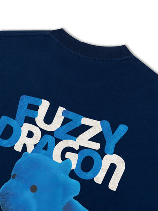 Áo Thun Relaxed Fit Fuzzy Font Dragon Blue