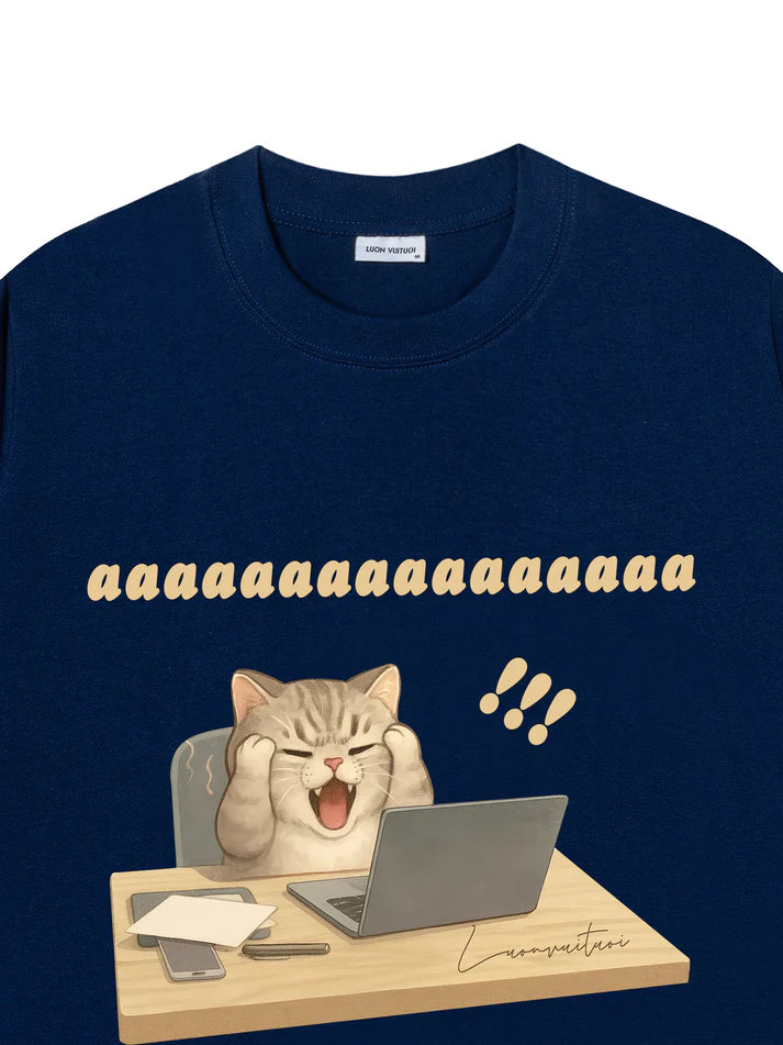 Áo Thun Relaxed Fit Con Mèo Điên Đầu